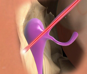 Nuestra investigación con el láser diodo de alta potencia y una microcámara que se introduce por la cavidad nasal y vía lagrimal nos ha permitido modificar la técnica quirúrgica original, estableciendo las bases de la cirugía minimamente invasiva. Dacriocistorrinostomía con láser.